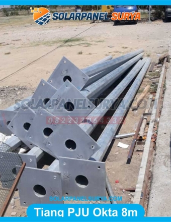 Tiang PJU Bulat 8 meter merupakan komponen penerangan lampu jalan yang berfungsi sebagai penyangga pada lampu jalan. Tiang Lampu Jalan umum (PJU) memiliki ukuran, tinggi serta model. Diantaranya, Tiang Bulat, Tiang Oktagonal dan Tiang Hexagonal. Ukuran diameter pipa lampu 1,5 inch atau 2 inch dan bisa disesuaikan sesuai permintaan.